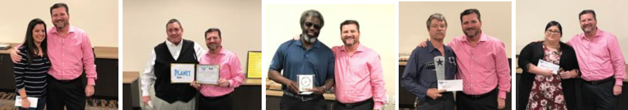 Recently, Shawn Burns, General Manager and Operating Partner, presented David Schulz, Jeff Edwards, Jennifer Stout and Noemi Escalante with a gift for their milestone anniversary. In addition, he recognized Charles Walker for 22 wonderful years of service at Planet Ford/Planet Lincoln.