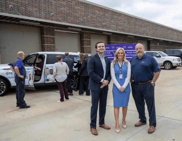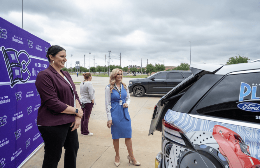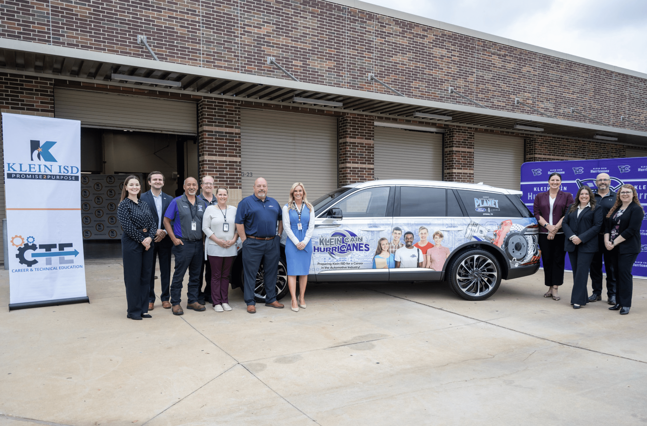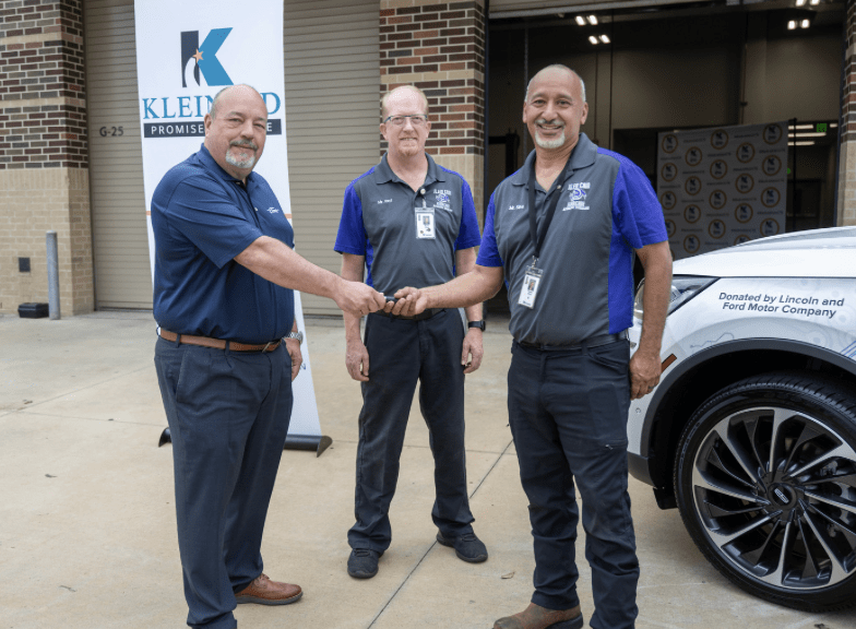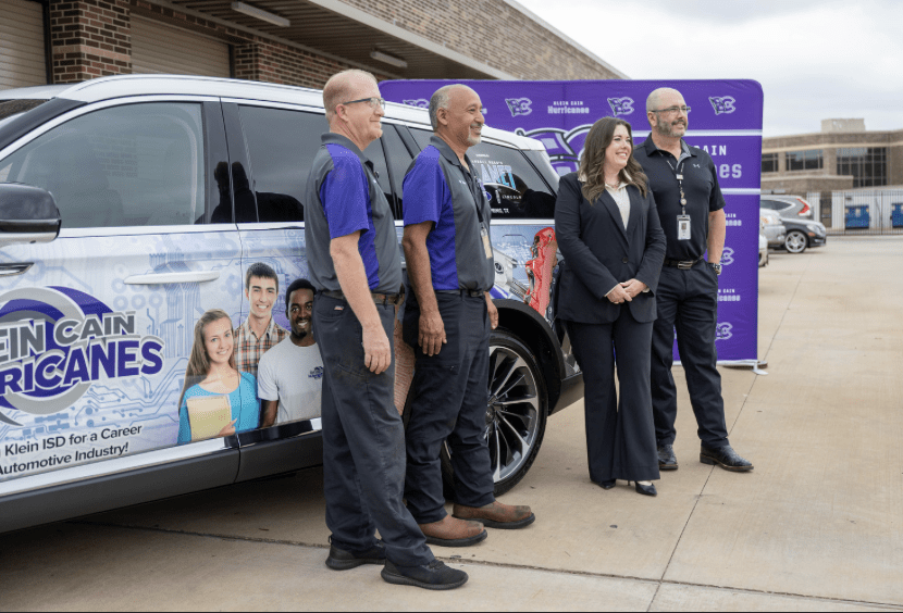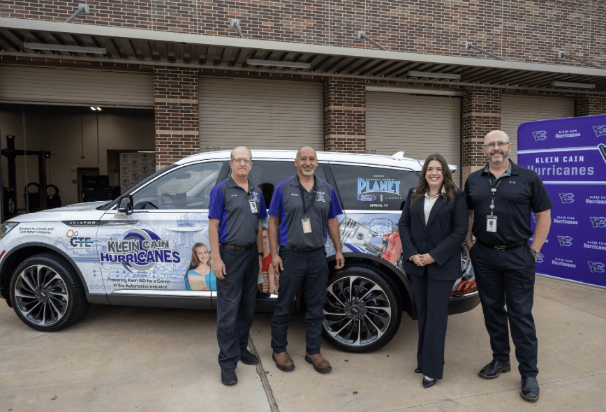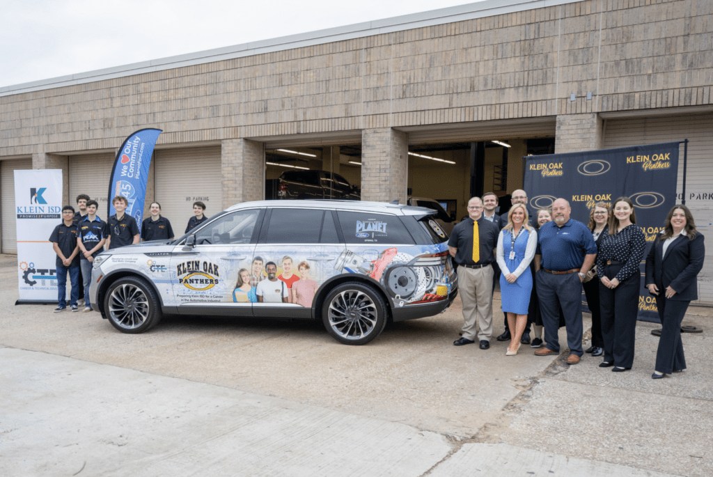 Andres Zorilla from Ford Motor Company along with Brad Stapp, Director of Operations for Planet Ford and Planet Lincoln presented both Klein Cain High School and Klein Oak High School with new vehicle. Jenny McGown, Klein ISD Superintendent; Deborah Bronner-Westerduin, Klein ISD Career & Technical Education Director; along with school’s educators, automotive students and Planet team members were on hand for the presentation.